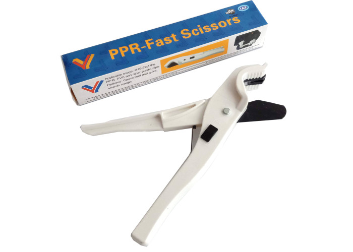 Ножиці для поліпропіленових труб. Внаслідок того, що поліпропіленові труби надходять у продаж у вигляді бухт яких прямих труб від 4 метрів в довжину, стає очевидним факт того, що для монтажу знадобитися нарізка на підходящі по довжині відрізки. Різати поліпропіленову трубу потрібно виключно під кутом 90 градусів, в іншому випадку ніхто не зможе гарантувати якісного з'єднання при пайки труб. Існує кілька варіантів різання, малий діаметр труб можна обрізати спеціальними ручними ножицями, для великих діаметрів використовують трубний різак або гільйотинний труборіз. Ножиці для ручного різання труб на відміну від звичайних ножиць мають тільки одне лезо, нижня частина призначена для фіксації труби в інструменті. Лезо як правило має спеціальну форму, що дозволяє розрізати без особливих зусиль, але при постійному використанні рука все одно втомлюється. В нашому асортименті представлені ножиці для поліпропіленових труб різних цінових сегментів, в пластиковій упаковці, а також економ - в поліетиленових пакетах.