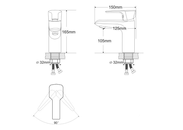 ROCK смеситель для умывальника однорычажный, хром , картридж: 35 мм, шланги подключения воды, латунь