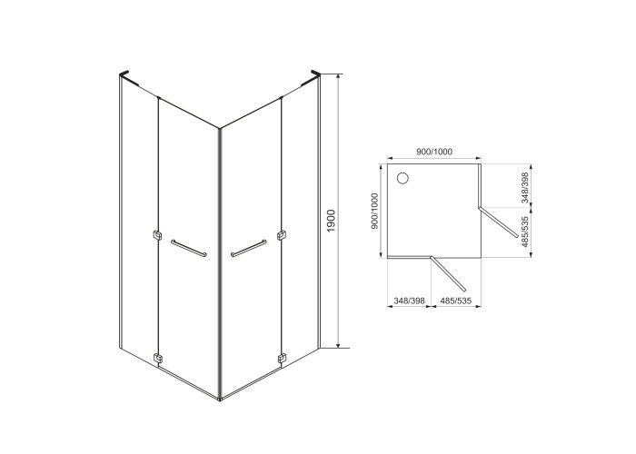 RUBIK душевая кабина квадратная 900*900*1900 мм (стекла+двери), распашные двери, цвет профиля хром, стекло прозрачное 8 мм.