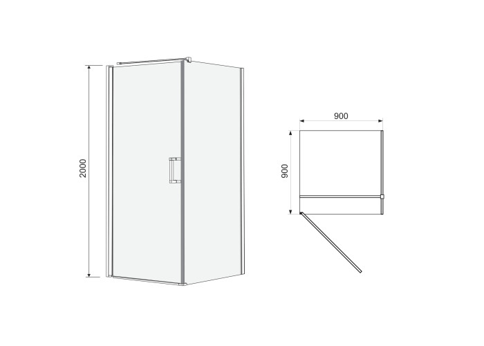 Душевая кабина Rudas 90*90*205 см, квадратная, на мелком поддоне (PUF) 5 см, распашная, стекло прозрачное (стекла+двери).