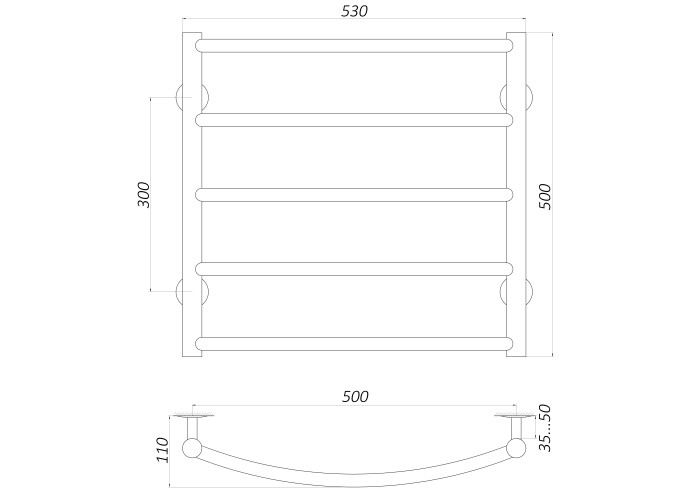 Полотенцесушитель изготовлен из нержавеющей стали.