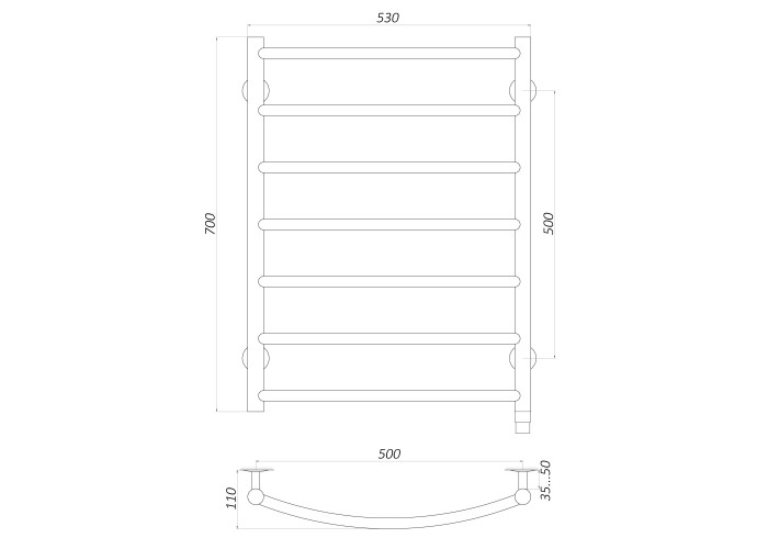 Полотенцесушитель изготовлен из нержавеющей стали.