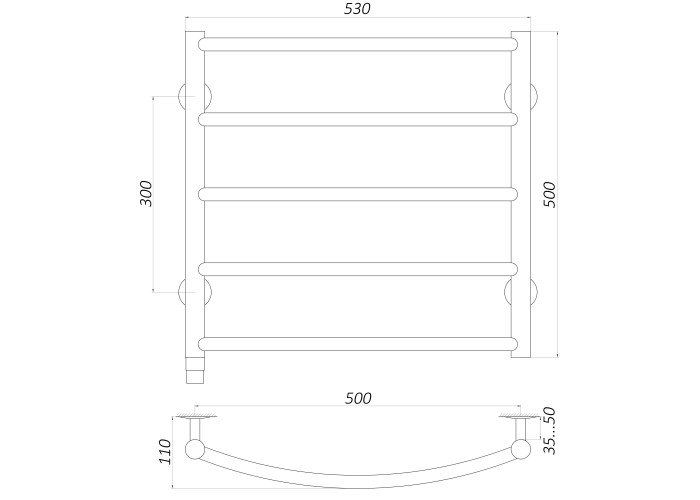 Полотенцесушитель изготовлен из нержавеющей стали.