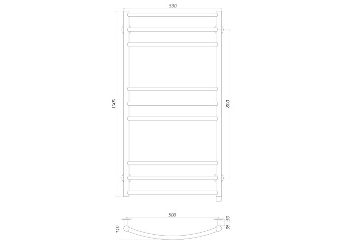 Полотенцесушитель изготовлен из нержавеющей стали.