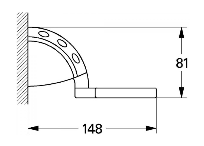 Держатель для стакана, без стакана. Настенный монтаж, прочная латунная конструкция, хромированное покрытие, легко устанавливается, комплектуется монтажными элементами. Размеры: высота: 81 мм, ширина: 148 мм.