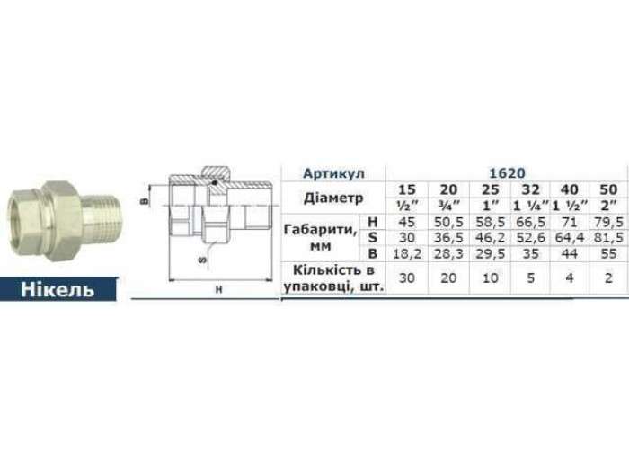 Характеристики 1 "прямий нікель Solomon 1620: