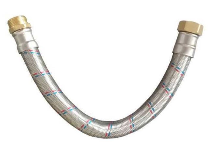 1. Гумовий шланг EPDM - зроблений з нетоксичного гуми, відрізняється надійністю і широким діапазоном допустимих температур. Червоні і сині нитки, вплетені в оплетку, свідчать про можливість використання гнучкого шланга для гарячої та холодної води.