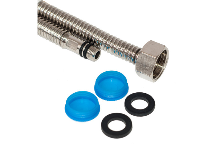 Шланги-иглы, которые продаются парами, необходимые для установки кранов для умывальника, кухни и биде.
