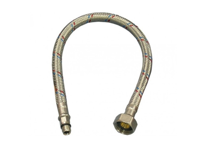 Шланг подводка ITAL М 10*1/2 1200мм короткая. Резиновые шланги в нержавеющей оплетке — самый распространенный вид подводки. Они просты в изготовлении и недороги. Резиновая часть изготовлена из этилпропиленового каучука — нетоксичной резины марки EPDM. Данный материал разрешен для применения в питьевом водоснабжении. Выдерживает нагрев до 95°С и давление в 50 атм (рабочим давлением считается 10-20 атм). Красные и синие прожилки в металлической оплетке шланга определяют для какой воды предназначен шланг (красная прожилка — для горячей воды, синяя прожилка — для холодной).