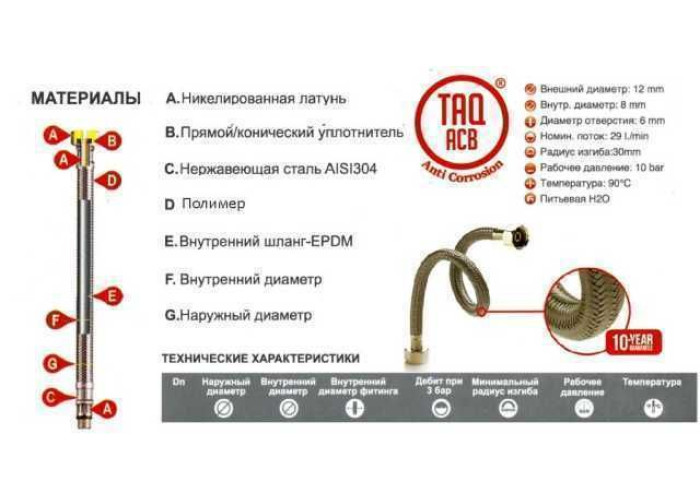 Шланг АНТИКОРРОЗИЯ водяной 1/2*1/2 НВ 1,0 м. TAQ ACB MG-1212-1000 TUCAI 204392
