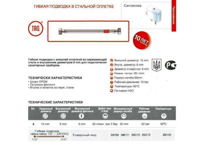 Шланг резиновый TUCAI (нержавейка) изготовлен из качественных и экологичных материалов, что позволяет подключать ее в водопроводные системы с питьевой водой. Также он не теряет своих качественных характеристик при использовании в технических системах, в системах горячего водоснабжения