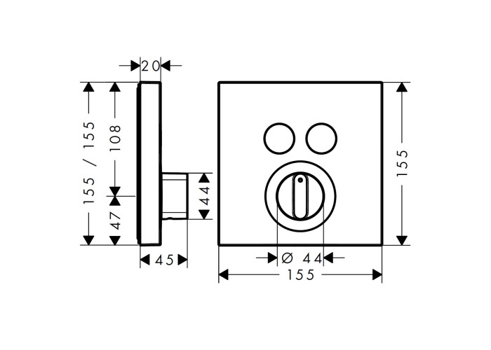 Внешняя часть встраиваемого смесителя для ванны и душа.