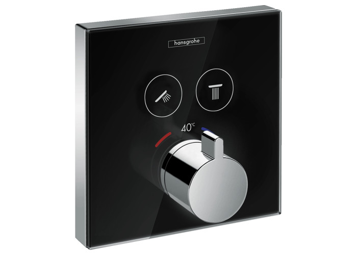 Термостат для душа на 2 потребителя, встраиваемый в стену, черный/хром