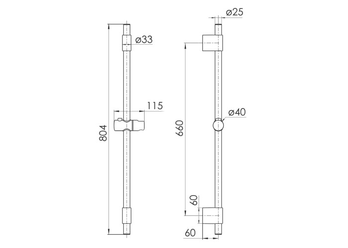 Душевая штанга 800 мм с держателем ручного душа, блистер, цвет хром.