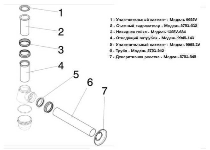 Сифон виконаний з стійкою латуні, мають глянсове хромування і відрізняється високою зливний продуктивністю.