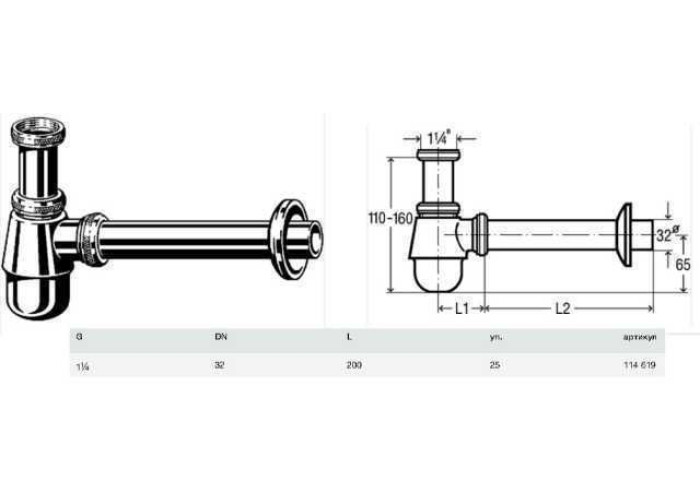 114619 Сифон хромований для біде б / г, 1 1/4 "х1 1/4", пляшковий VIEGA
