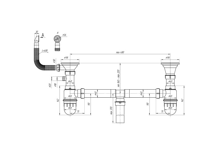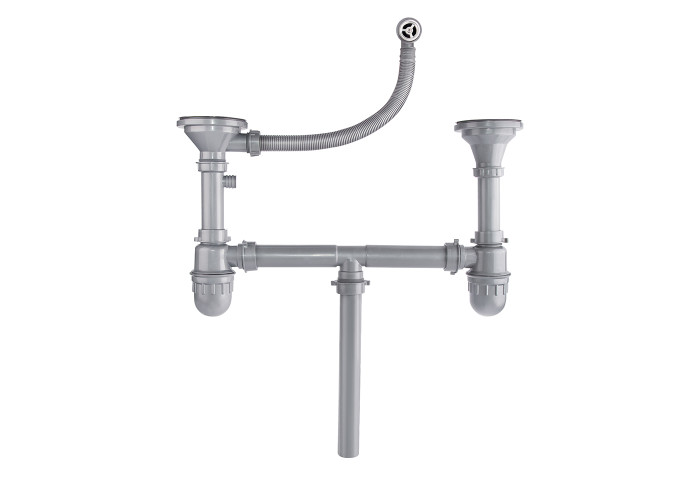 Сифон для кухонної мийки з двома чашами Imperial 104-2 виконаний з пластику з двома зливними отворами на одному рівні. Таким чином, виріб не зазнає впливу корозії, жир та бруд не скупчуються на гладких внутрішніх стінках, каналізація не засмічується: резервуари двох колб відкручуються для очищення від твердих частинок. До переваг даної моделі варто також віднести наявність підмикання до побутових приладів і переливу, який убезпечить вас від небажаного виходу води за край мийки.