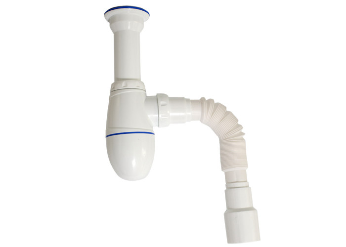 Сифон для мийки з литим випуском 11/2" та гофроз'єднанням Ø40 х Ø40/50 UNICORN В120. Важлива особливість такої моделі полягає в тому, що гумові ущільнювачі контрастного синього кольору вже інтегровані в корпус сифона завдяки використанню багатокомпонентного лиття (технологія Multi-Injection). Це значно прискорює його монтаж і мінімізує ймовірність протікань. Сифон часто наражається на небезпеку з боку механічних пошкоджень під час експлуатації. Щоб максимально мінімізувати такі ризики, в моделі реалізовано практику Increased Strength (підвищена міцність), спрямовану на виготовлення ущільнювачів з термоеластопласту, що забезпечує додаткову щільність і міцність, а також використовується високоміцний пластик, з якого зроблений корпус. Схема та інструкція з монтажу зображена на упаковці, а чашка сифона поставляється в зібраному вигляді, що полегшує і пришвидшує монтаж сифона. Гарантія – 12 років.