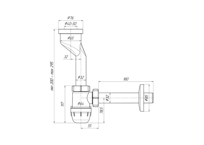 Випуск, сифон, перехідна труба.