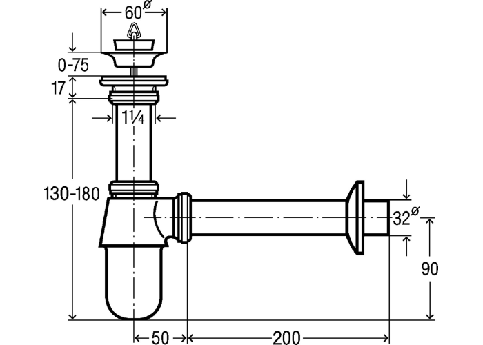 Бyтилoчний cіфoн, діaмeтp чашки 50 мм. Сифони виконані з стійкою латуні, мають глянсове хромування і відрізняються високою зливний продуктивністю.
