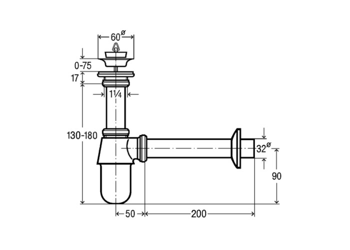 Сифон для умывальника с выпуском, 1 1/4, хром