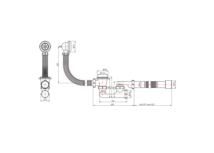 Довжина переливу: 500 мм. Довжина гофрованої труби 235-425 мм.
