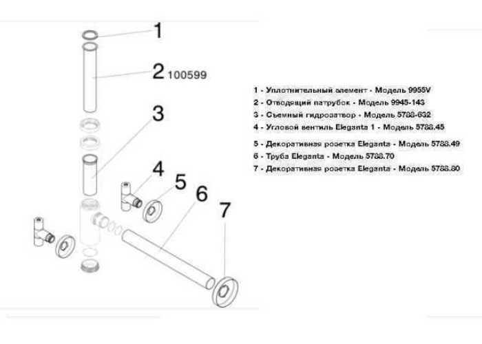 2 угловых вентиля, выдвижной патрубок 200 мм,