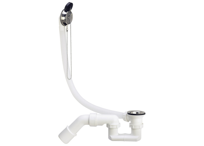 Сифон для ванной, в комплектацию входит : гибкая переливная труба, накладка из нержавеющей стали, пробка, гидрозатвор