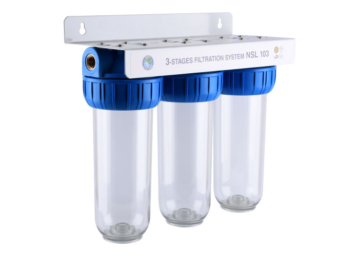 Система триступеневого очищення води ТМ «Bio + systems» NSL103 ефективно очищає питну воду, що надходить із системи центрального водопостачання від різних шкідливих для організму людини забруднень і домішок: хлорорганічних сполук, механічних домішок.