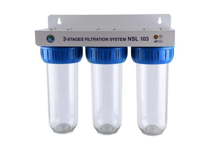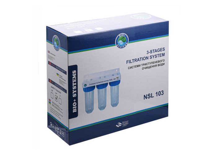 Система трехступенчатой очистки воды ТМ «Bio+ systems» NSL103 эффективно очищает питьевую воду, поступающую из системы центрального водоснабжения от различных вредных для организма человека загрязнений и примесей: хлорорганических соединений, механических примесей.