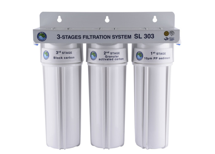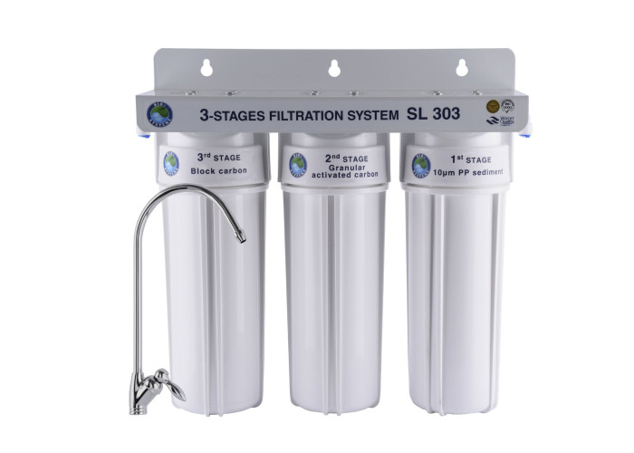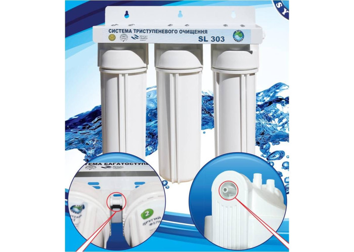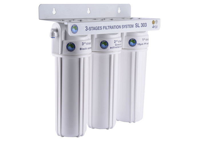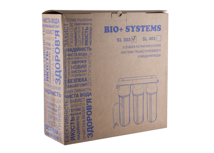 Система триступеневого очищення води ТМ «Bio + Systems» SL 303 ефективно очищає питну воду, що надходить із системи центрального водопостачання від різних шкідливих для організму людини забруднень і домішок: хлорорганічних сполук, механічних домішок.