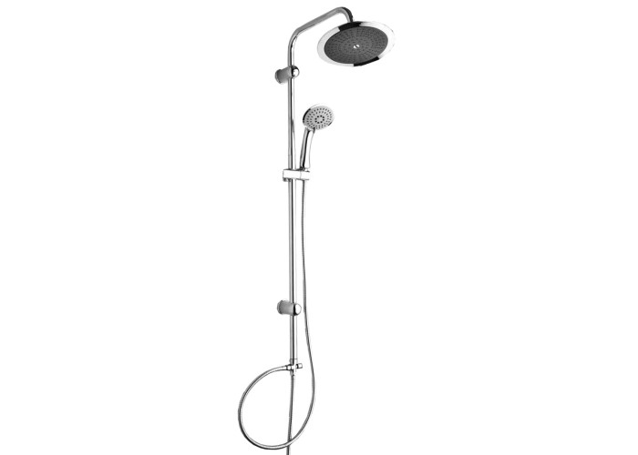 Душевая система, высота 1100 мм, диаметр верхнего душа 220 мм, душ ручной: 3 режима, шланг 2 шт., картон материал штанги: нержавеющая сталь материал лейки верхнего душа, ручного душа: ABS-пластик