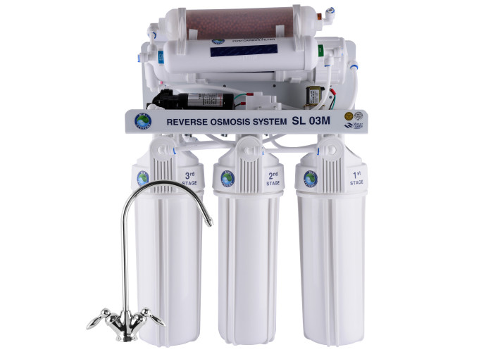 Система обратного осмоса Bio+ systems (мембр. Filmtec пр-во США) с насосом+мин-р RO-75-SL03M+ ПЛАСТ. бак