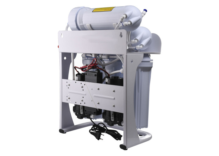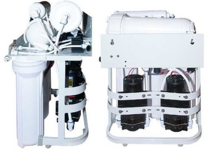 Система зворотного осмосу BIO + Systems RO400G-P01 є повністю автоматизованою системою очищення води, призначеної для роботи, практично, в будь-яких умовах, завдяки оснащенню двома підвищують насосами. Можлива експлуатація, навіть, при недостатньому тиску води у водопроводі. Дві мембрани зворотного осмосу забезпечують високу продуктивність 1510 л / добу, що дозволяє експлуатувати систему без накопичувального бака для води, отримуючи очищену воду в реальному часі.