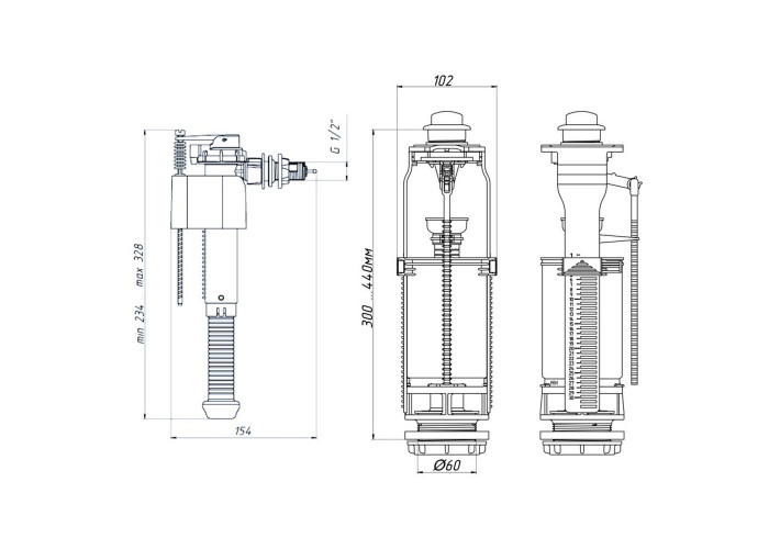 Сливной/наливной механизм для унитаза ANI Plast WC8010C выполнен из пластика. Она монтируется в бачок унитаза с боковым подводом воды, что позволит организовать процесс смыва. Для приведения изделия в действие необходимо нажать один раз на хромированную кнопку. После полного слива воды открывается впускной клапан. Наличие перелива обезопасит вас от поломки впускного клапана и спустит избыток воды в канализационную трубу. Высота его горловины регулируется от 300 до 440 мм.
