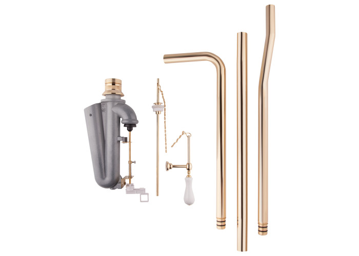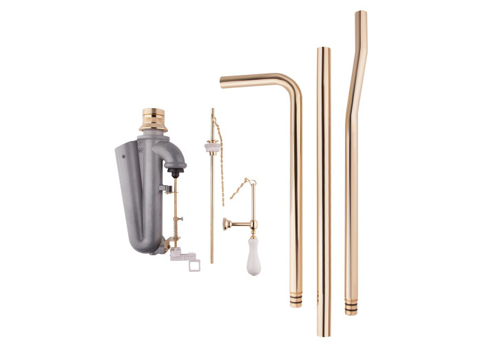 Сливной/наливной механизм для унитаза Azzurra Charme B1900TO отлично дополнит интерьер в стиле ретро, так как имеет высокие трубы и держатель ручки соответствующего дизайна в золотом цвете. Сливной механизм устанавливается в высокий пристенный бачок и, благодаря металлу, из которого изготовлен, не требует для этого особых усилий.