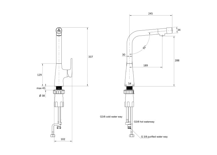 Подача фильтрованной воды включается нажимной кнопкой на конце излива.