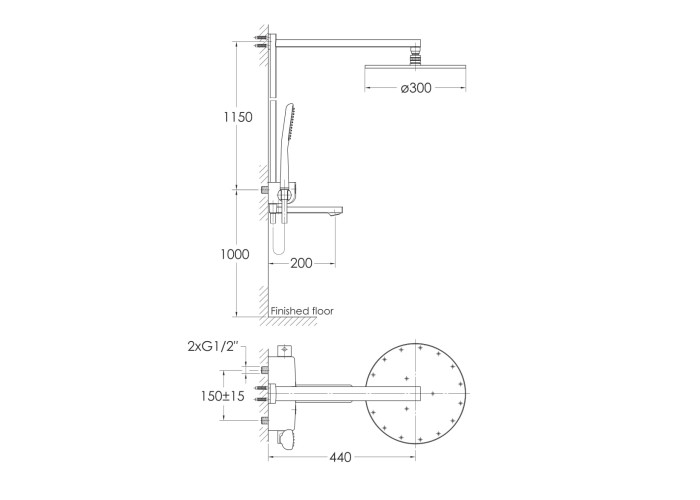 диаметр верхнего душа: 300 мм