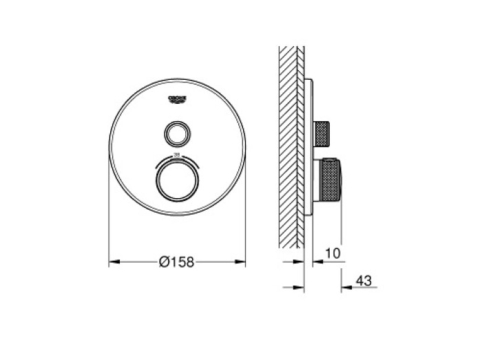 SmartControl cмеситель для душа, внешняя часть, на 1 выход, латунь, цвет хром. С термостатом, встраиваемый в стену.