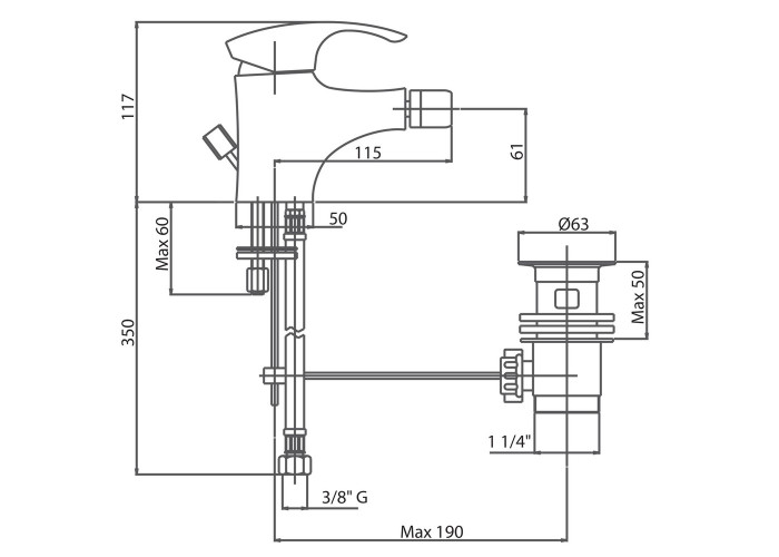 Смеситель, гибкая подводка, донный клапан, крепежи.