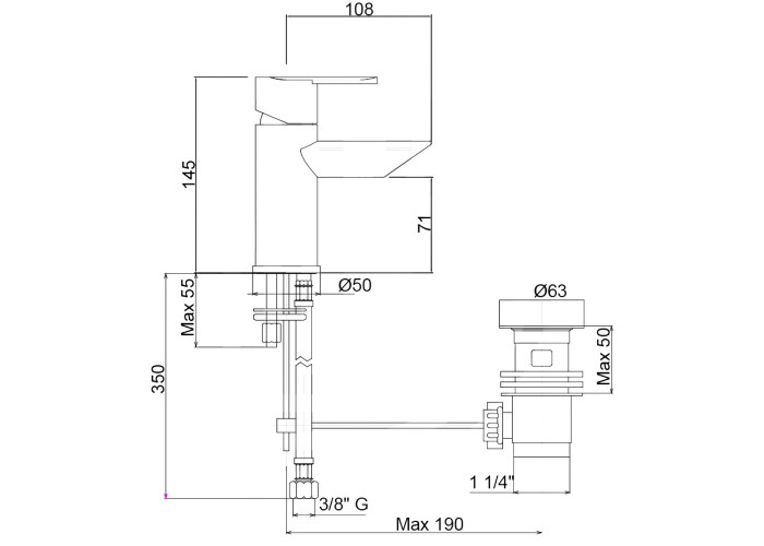 Змішувач, гнучкий підвід, донний клапан, кріплення.