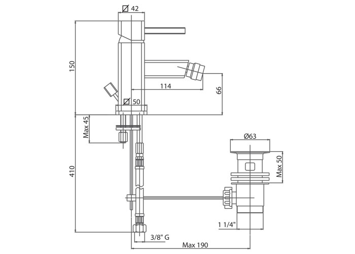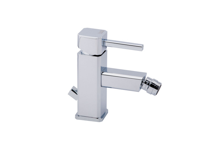 Змішувач для біде Bianchi Kubik BIDKBK2003#IACRM має стаціонарний вилив, зручний важіль для увімкнення води, невеликий важіль ззаду для включення самого виробу та носик з виносом. Хромована поверхня стійка до корозії та збереже свій блиск на довгі роки завдяки виготовленню з латуні, додаванню нікелю товщиною 11 мкм і порошкової фарби. Виріб монтується врізним способом на обідок біде з донним клапаном і шлангами підключення, які входить до комплекту поставки. На важіль нанесено фірмовий логотип.