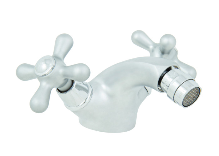 Представленный здесь двухвентильный, настольный смеситель для биде Deco-Classic SC12014 PTC от Emmevi, изготовлен из высококачественной латуни с покрытием цвета матового хрома, имеет стационарный излив с выносом 13 см. Модель устанавливается на одно отверстие используя гибкие шланги для подвода воды М10*1/2″.