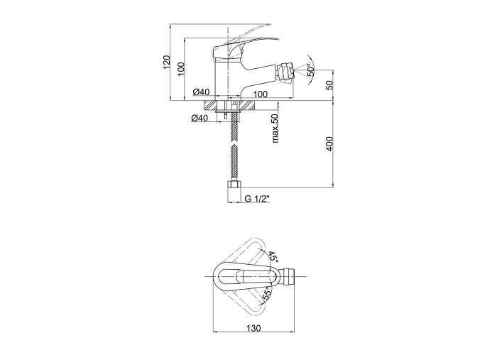 Смеситель, гибкая подводка, крепежи.