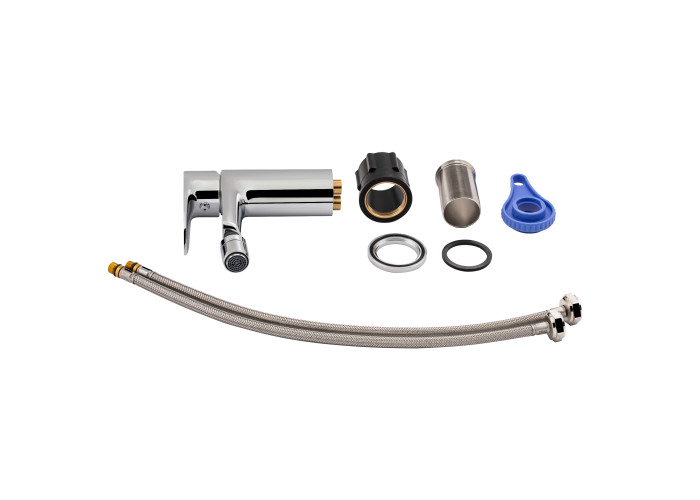 Смеситель, гибкая подводка, крепежи.
