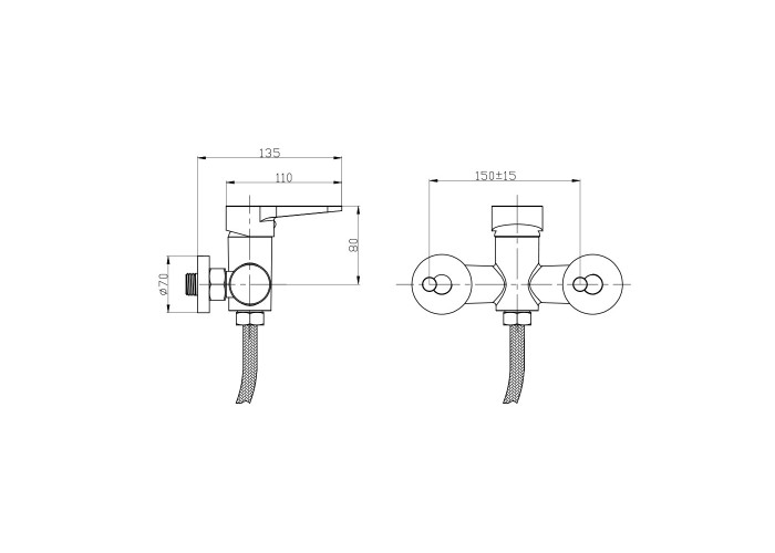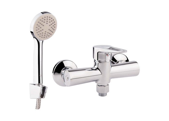 Смеситель, лейка для ручного душа, душевой шланг, кронштейн, крепежи.