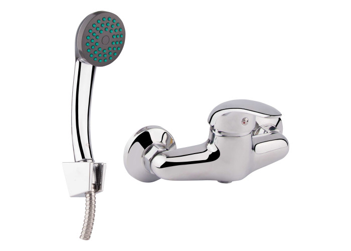 Смеситель, лейка для ручного душа, душевой шланг, кронштейн, крепежи.