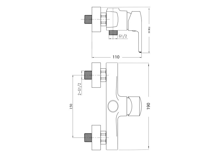 Смеситель, лейка для ручного душа, душевой шланг, кронштейн, крепежи.