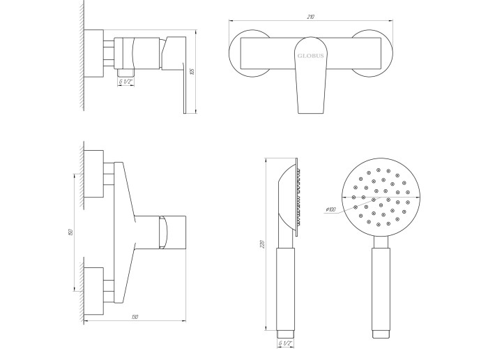 Смеситель для душа Globus Lux SHA-105-M SUS304 зеркало, душевой комплект