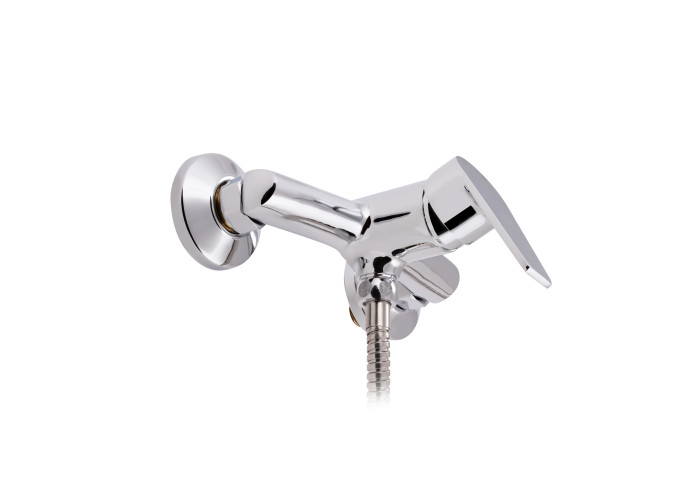 Змішувач для душу Lidz (CRM) 19 46 010 виконаний з латуні з глянцевою блискучою поверхнею. Він і тримач ручного душу монтуються на стіну. Декоративні розетки приховають похибки установки на обробці ванної кімнати. Подача води здійснюється завдяки повороту важеля в потрібне положення.